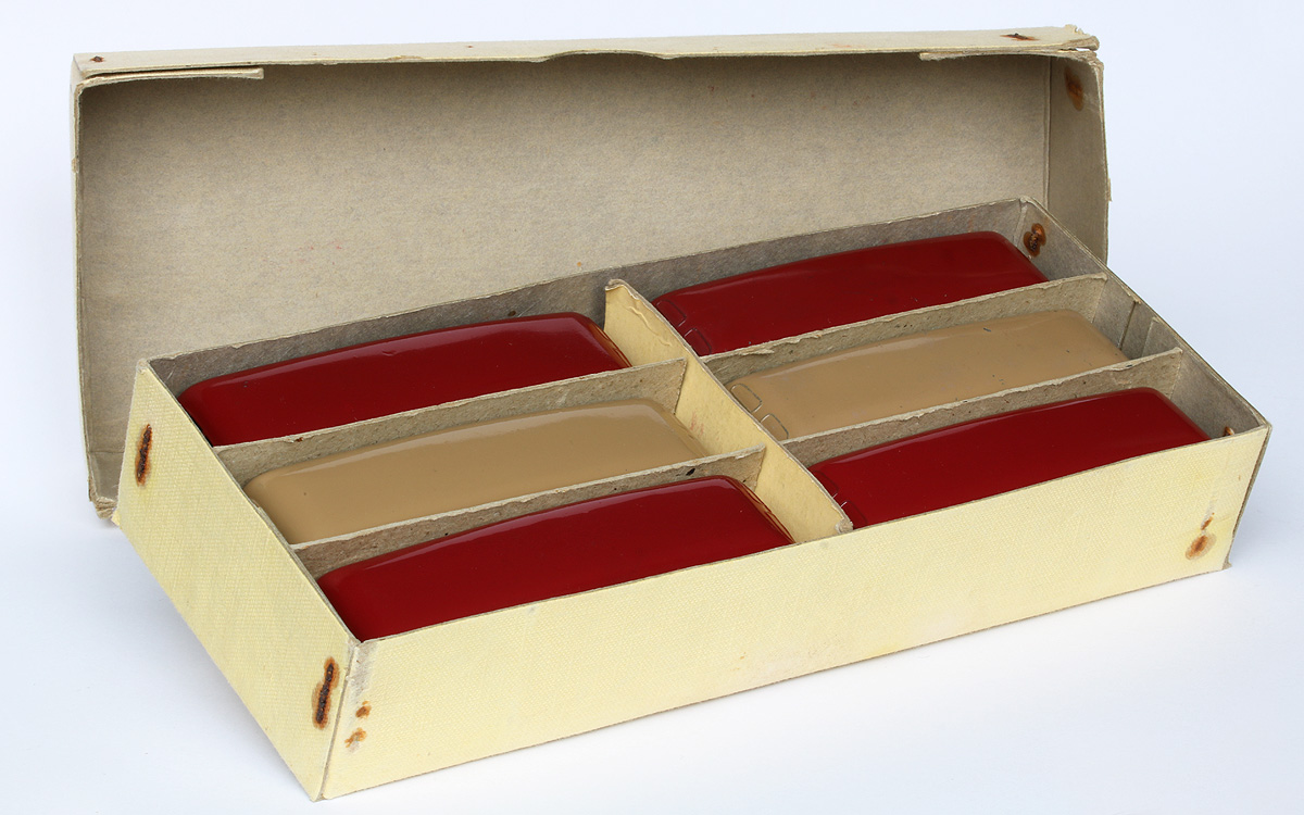 3 I have also experimented with some of my earlier 162c 18-pounder guns, and they do fit (albeit a rather tight squeeze) as they are smaller and have a lower 'blast shield' - so could this have been an Export-only (USA) box for the 162c, and an intention for the 162c model to be re-numbered to 686? My research seems to indicate that the 162c was exported to America until 1955 - but infuriatingly, the quality-control rubber stamp on the inside of the lid (4 digits) reads "E - 6 5?" (June 195?) the last character being unreadable! There is no evidence of a 'Hudson-Dobson' label on the box, however the lid does have a handwritten price, 1.00.