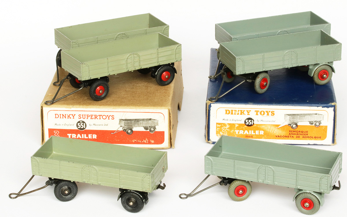 The yellow box for the gun can be dated to 1958 because the drawing shows the gun with treaded tyres. So there is a short gap between the issue of the gun in July 1957 and the issue of the yellow box some time in 1958. The tradeboxes must have been used during this short period.