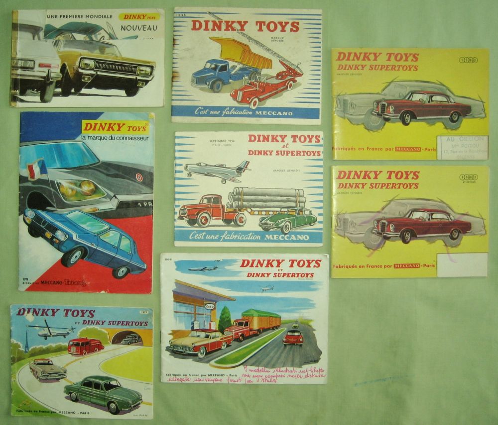 I have recently acquired these French Dinky catalogues. They are for 1955,1956, 1957,1959,1963, 1963 (2nd edition), 1971 and one which I am unable to give a date.