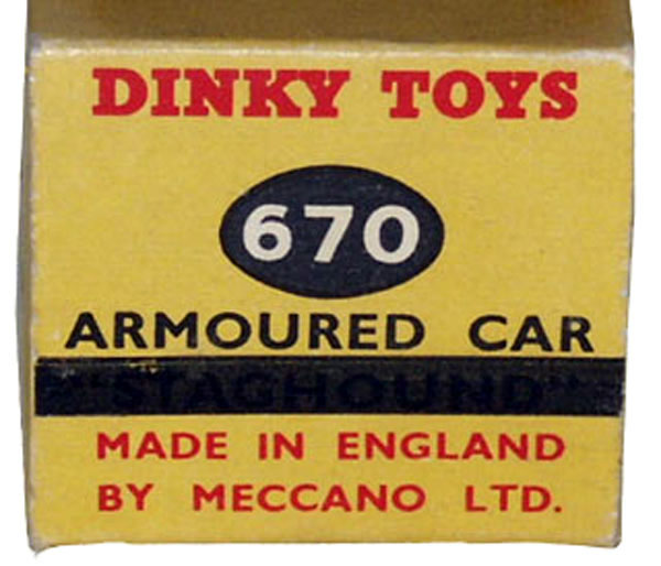 I recently acquired another of these 670 Armoured Cars with a box that has the black bar across the end, blanking out the word STAGHOUND.