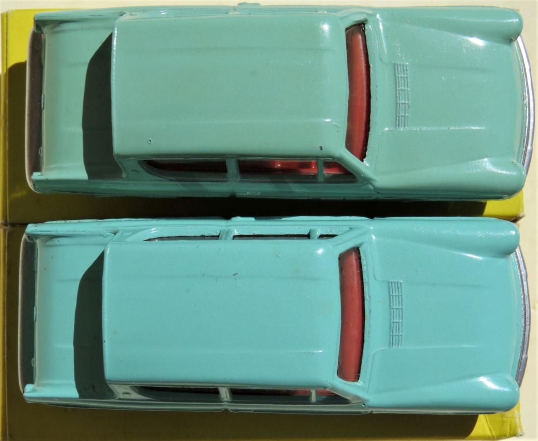 In the absence of any comment on the above post I am attaching hopefully better images of the two quite distinct castings. The one on the left has the flatter boot line and les curve of the lower back window, with the one on the right having a rounded boot line and more curve with the lower back window.