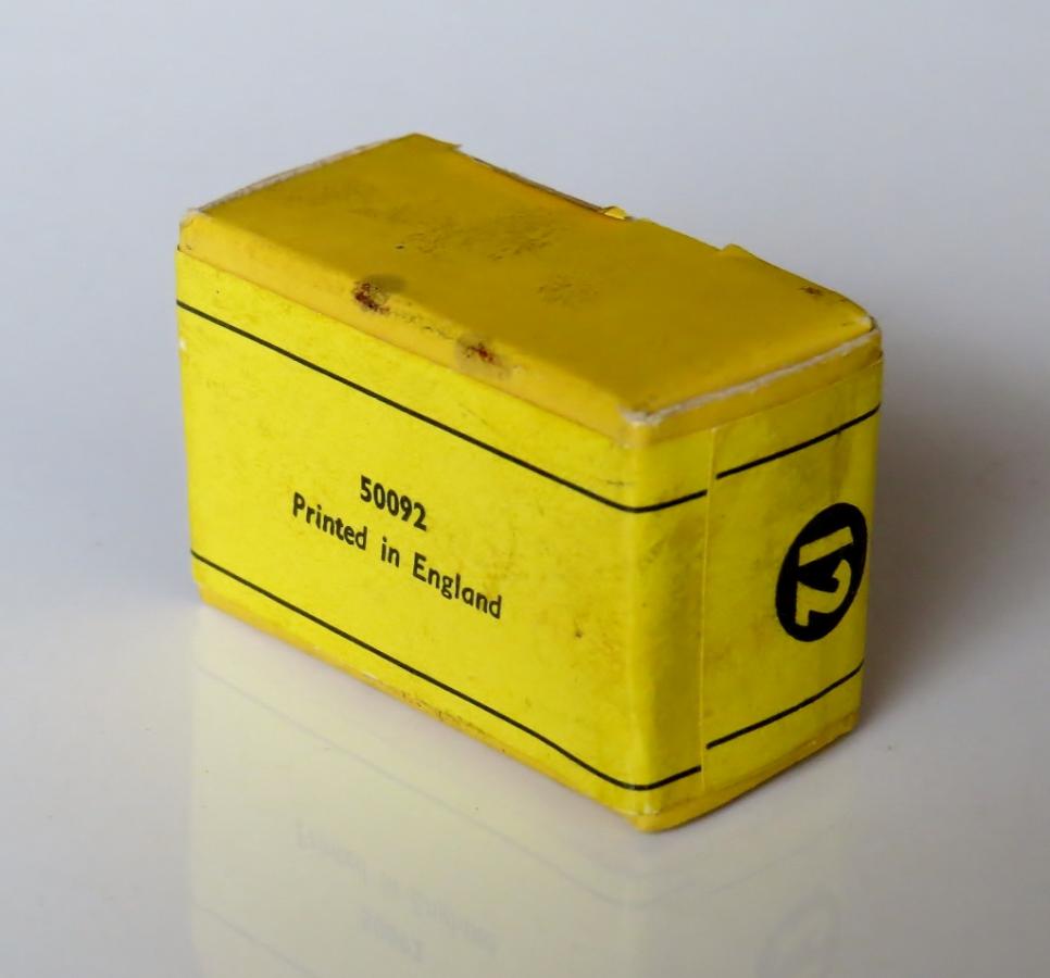 Opening the 187 box, I was delighted to see my little Volkswagen Karmann Ghia still with its black tyres I had swapped all those years ago. What I have been trying to relate, rather long-winded I admit, is that for many models that are shod with treaded white tyres but the norm being treaded black tyres, the chances of the tyres having been swapped years previously has to be seriously considered, especially the 150 Rolls Royce, 181 Volkswagen, 194 Bentley, 195 Jaguar, 196 Holden and 198 Rolls Royce; the Rolls Royce’s in particular as the black tyres were more in keeping with their "status". Of the models shown at the start of this Thread, of these, I have never seen any of them with white tyres before, but the Mobilgas tanker has to stand out as one reasonably assumed to have been originally shod with white tyres, although the front ones have a newer appearance so these may be a modern replacement. So too the age of the tyres on the other models shown may indicate a replacement at some stage. I must confess that I rather like the Karmann Ghia with black tyres!