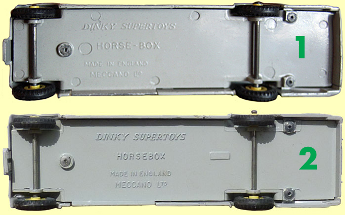 - it has the condensed 'Horsebox' lettering without the hyphen, no mould ejector marks, and the small elongated raised cast panel in front of the back axle.