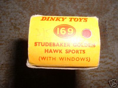 As I said, those awful images came from an eBay auction almost 10 years ago.  Attached are a few more images of the 169 Studebaker Golden Hawk in the plain yellow end-flap box but unfortunately, each image has the model either sitting on top or in front of the box - nothing with just the box itself.