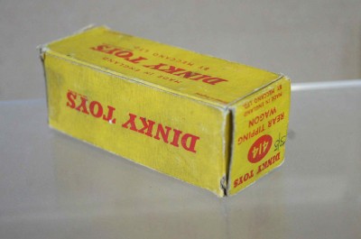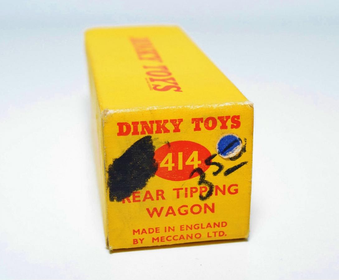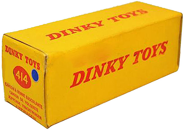 On this box, the words Dinky Toys on the large side are in block letters contrary to the box for the 414 tipping wagon.
