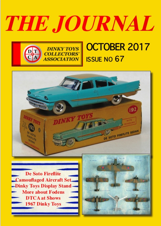Publication Year: 2017Publication Type: JournalsCountry: EnglandDeSoto Fireflite, Camouflaged Aircraft Set, Dinky Toys Display Stand, More about Fodens, DTCA at Shows, 1967 Dinky Toys
