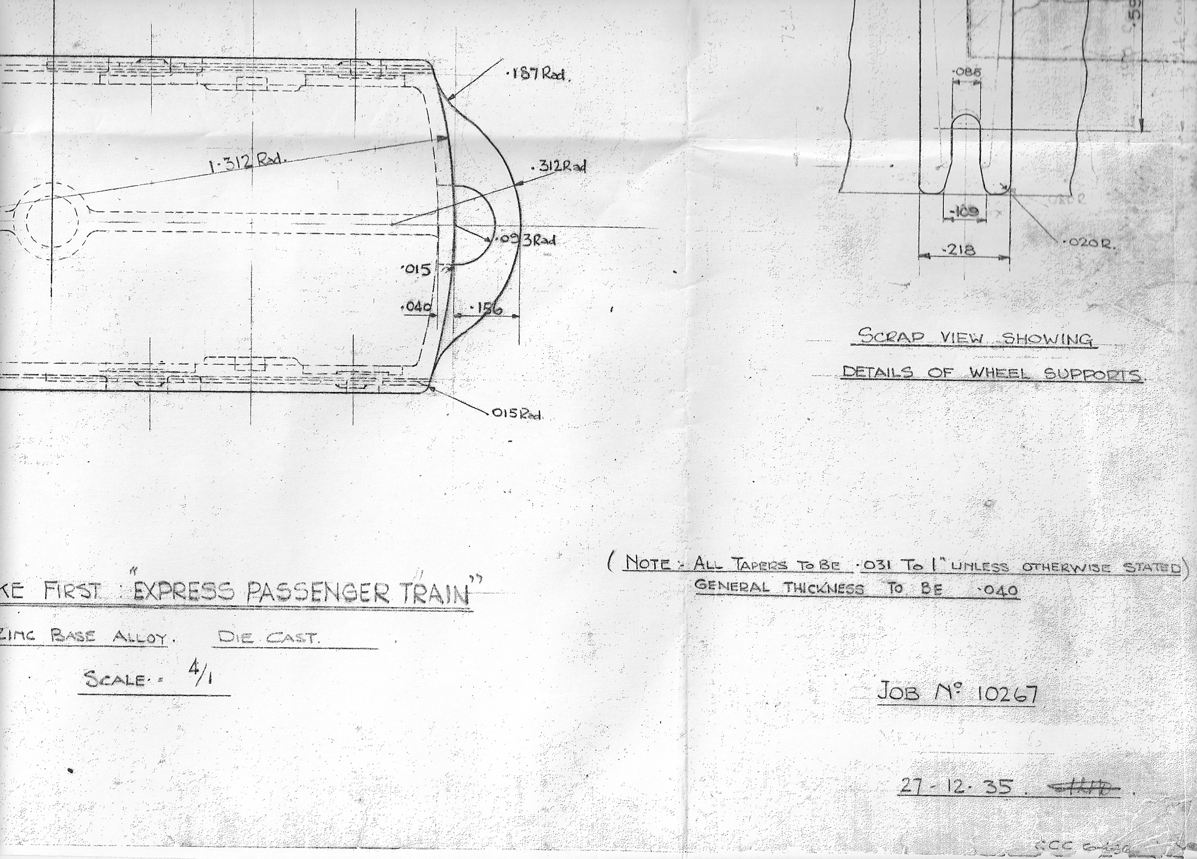 The bottom left section shows the change control and indicates that there were no changes to the drawings during the War as suggested in The book Dinky Toys and Modelled Miniatures.