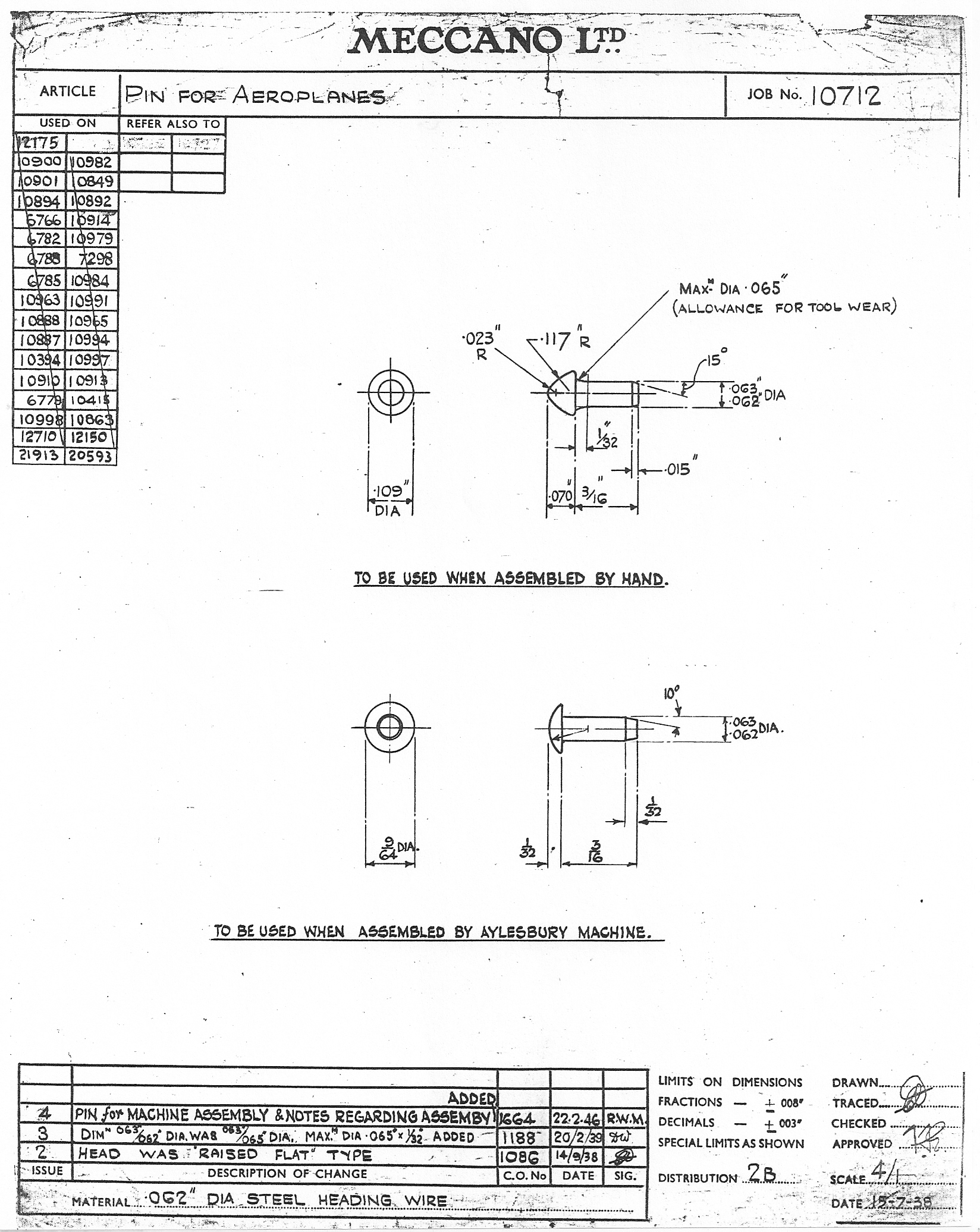 This is the factory drawing for the Pin for Aeroplanes to fix the propellors of pre-war aircraft.