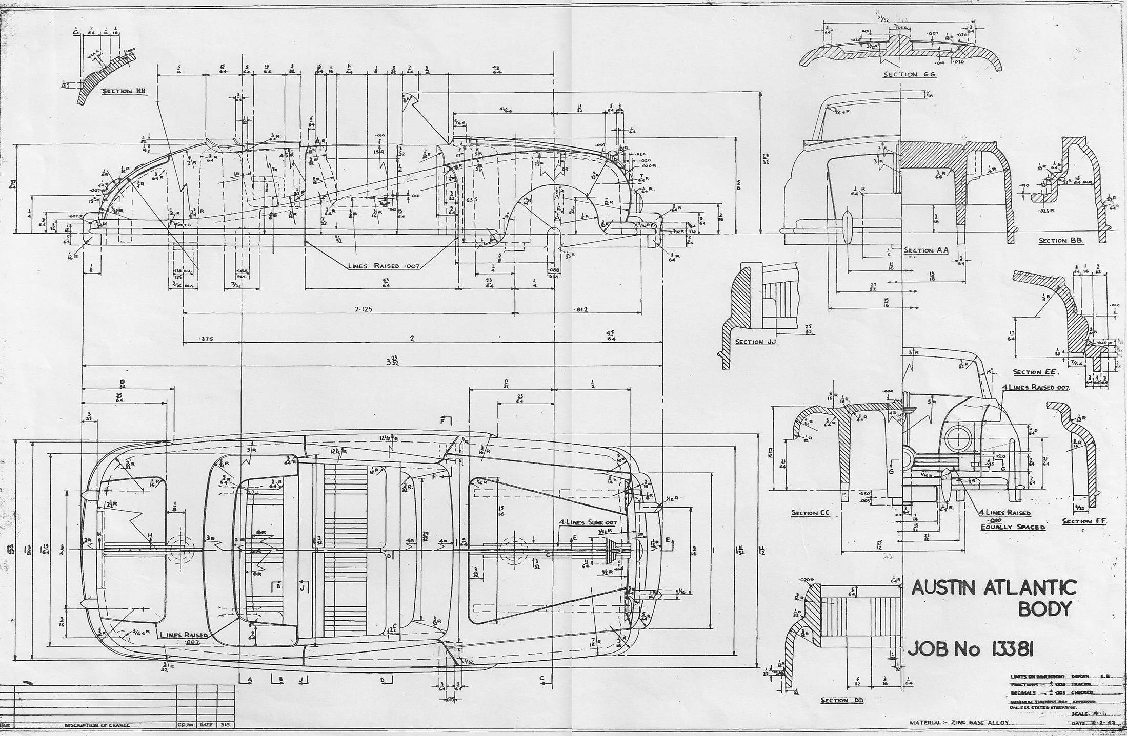 This is the factory drawing for the 140a/106 Austin Atlantic body, produced from 1951 to 1958.