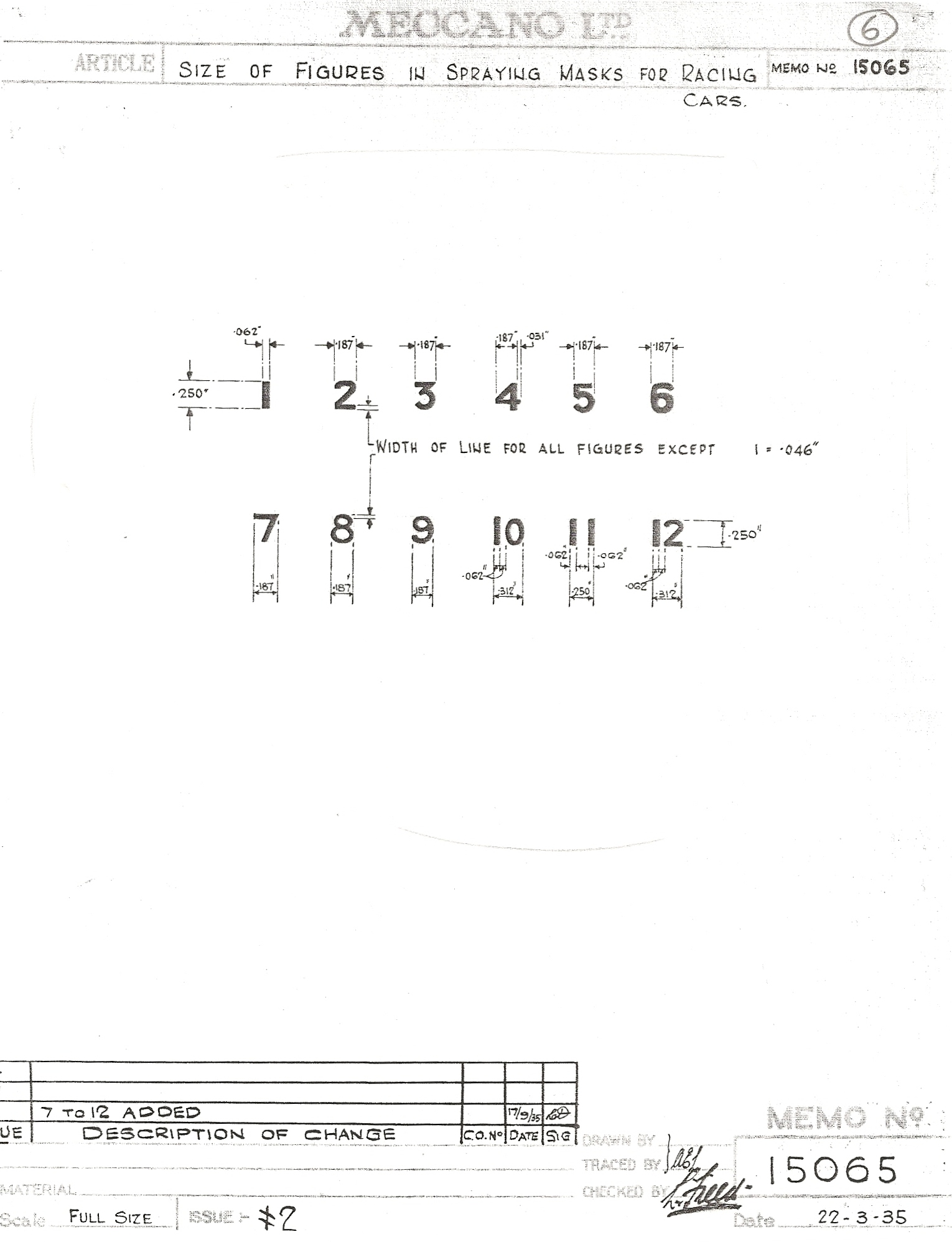 Publication Year: UndatedPublication Type: Factory DrawingsCountry: EnglandThis is the factory memo drawing for the Size of Figures in Spraying Masks for Racing Cars. This image has been graciously donated to the DTCA by Mike Richardson.