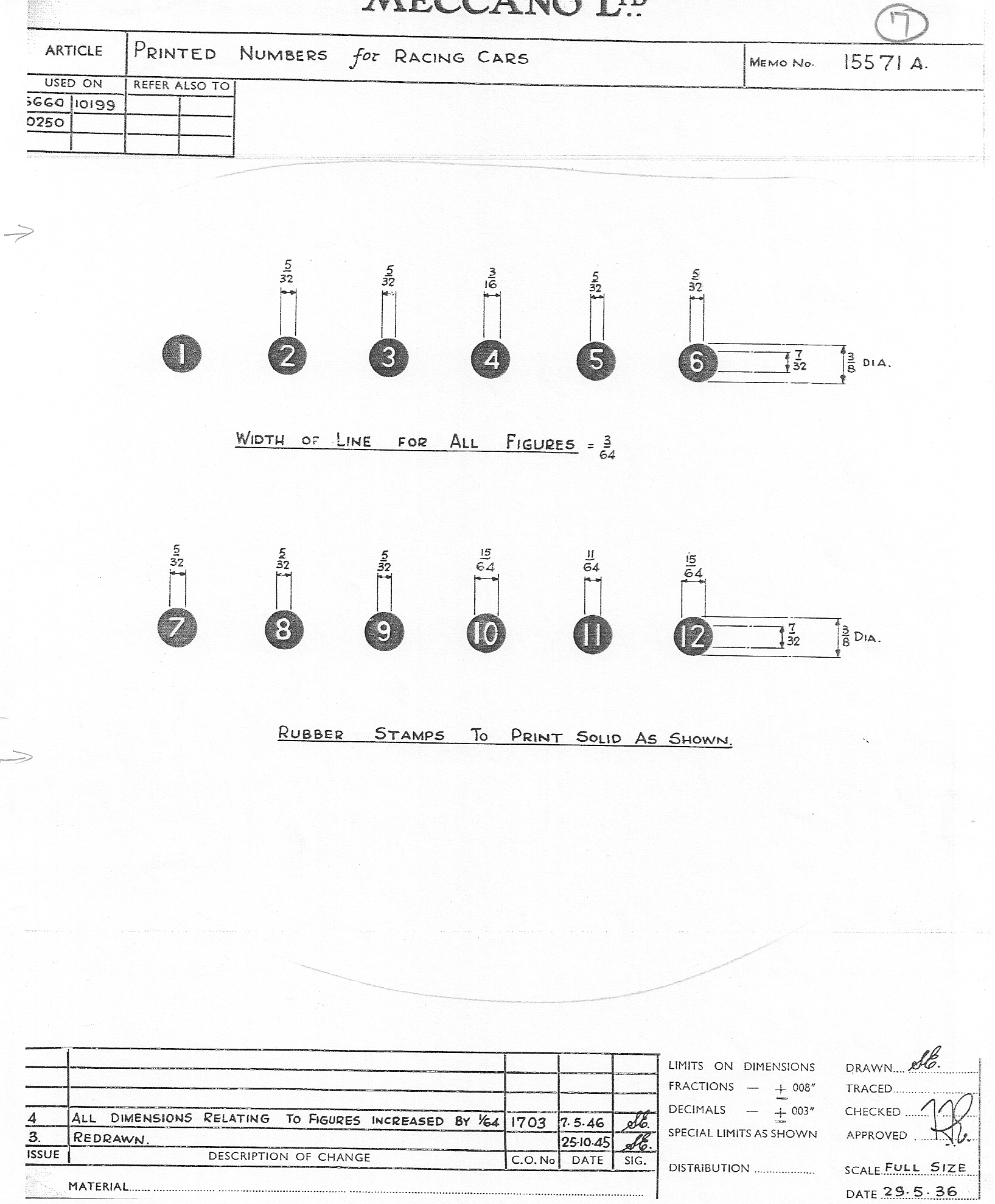 Publication Year: UndatedPublication Type: Factory DrawingsCountry: EnglandThis is the factory memo drawing for the Printed Numbers for Racing Cars. This image has been graciously donated to the DTCA by Mike Richardson.